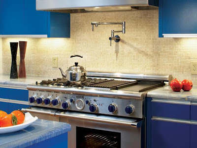 The project embodies the exuberance of a Brazilian born woman, who embraces color with all of its glory. Home Design Deluxe /search/label/Kitchen%20Design" target="_blank">The dynamic kitchen, featured in Angeleno magazine and California Home and Design, has painted blue cabinets, Azul Macubas extra granite and state of the art appliances. In addition, the ceiling features the